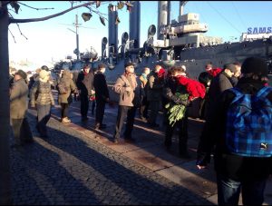 Я , кстати, отмечал 100- летие Великой Революции в 1917 году утренним походом на крейсер » Аврору».