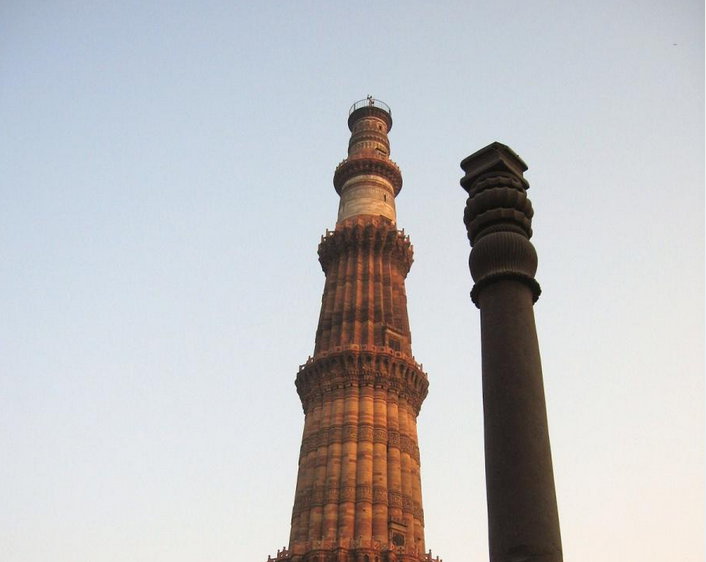 И действительно — обладая самой малой толикой воображения можно представить что 73 метровый Минарет это космический челнок, приземлившийся здесь много веков назад. Колонна это зонд и маяк или что — то в этом роде, рядом основание или остатки второго челнока, которому пришёл на помощь первый…ну словом фантазия может разыграться не на шутку.