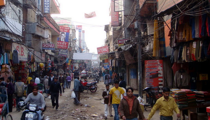 Поскольку время раннее, решили доехав до станции «Нью Дели « это и есть железнодорожный вокзал, посетить самое «злачное место» — улицу «Мэйн Базар» — квинтоэсенцию всей торговли Дели.