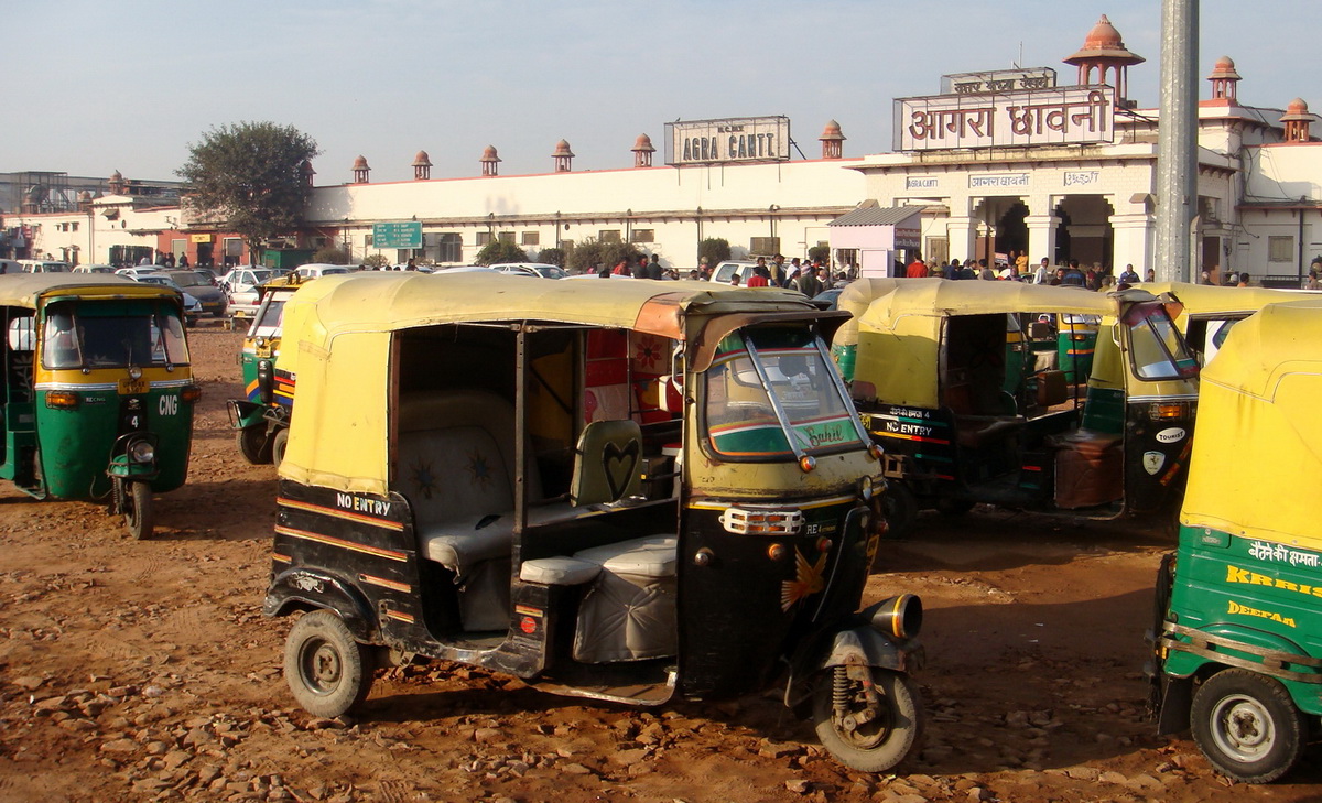 Приглядев не самое дорогое такси ( белые чистые западные машины в первом ряду, а во втором чёрно-жёлтые колымаги местного производства, что — то среднее между английским «кэбом» и «Москвичом 412» ) и сговорившись о цене (400 рупий) уселись в такси и оно бренча и гремя, покатилось к цели.