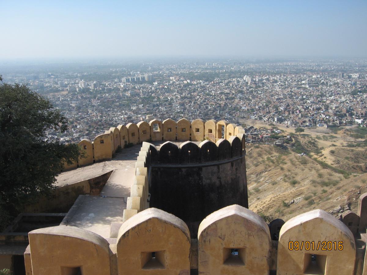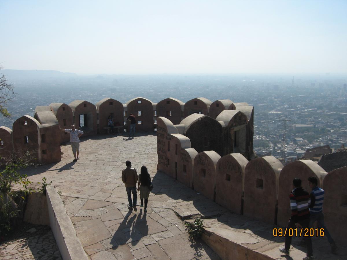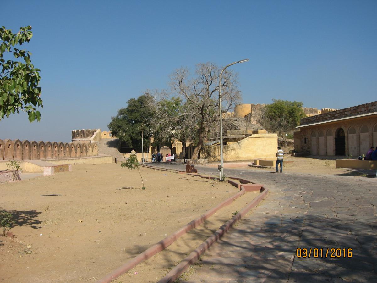 Форт возвышается прямо над городом и является исключительно военным объектом, по размерам (сохранившейся части) меньше предыдущего и центральным, так сказать экспонатом здесь является Летний дворец махараджи с крыши которого открывается очень красивый вид на город Джайпур.