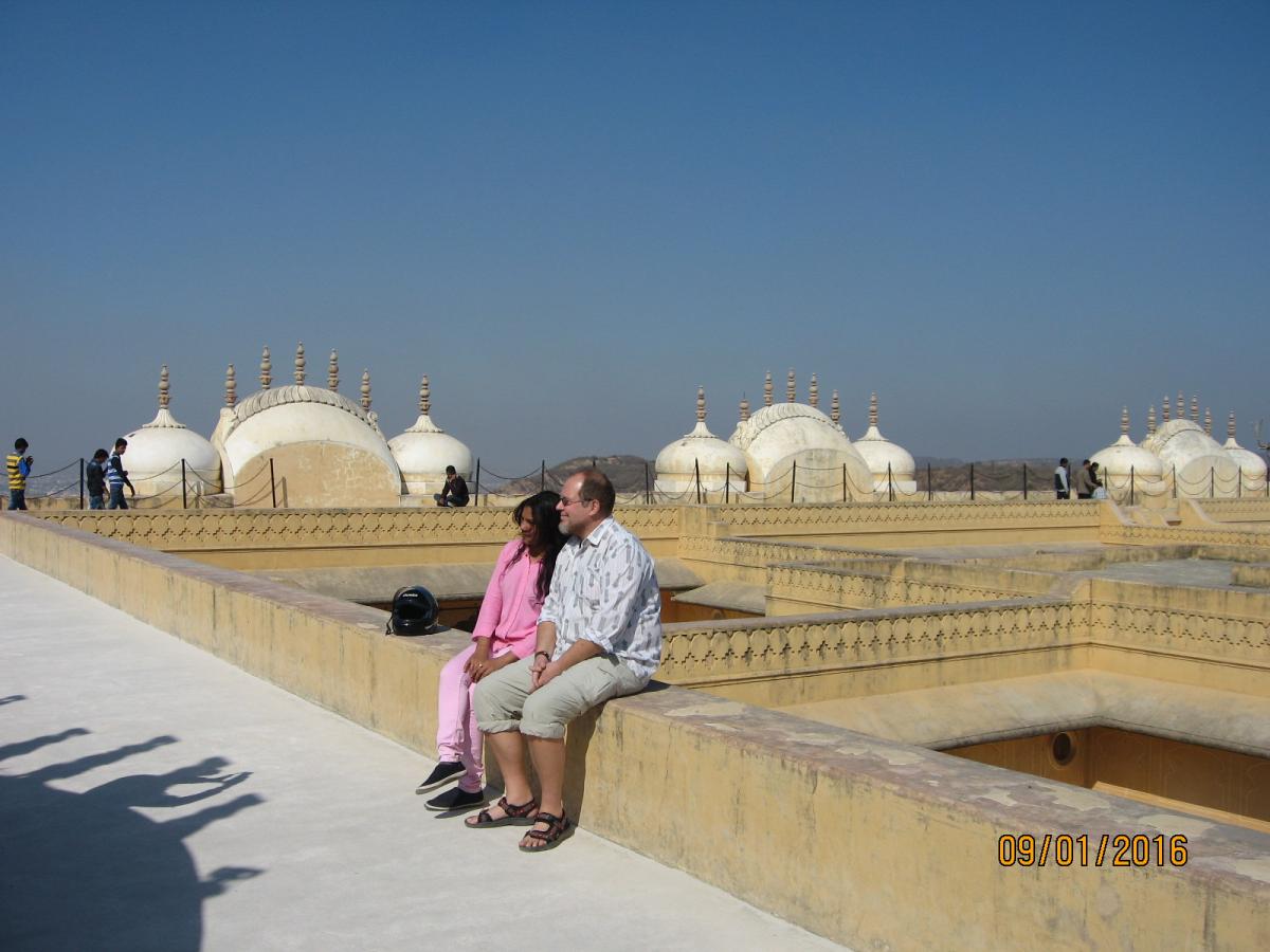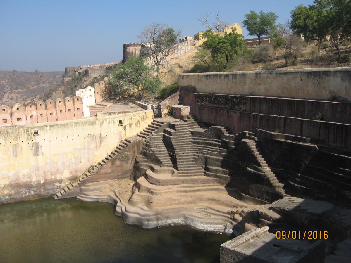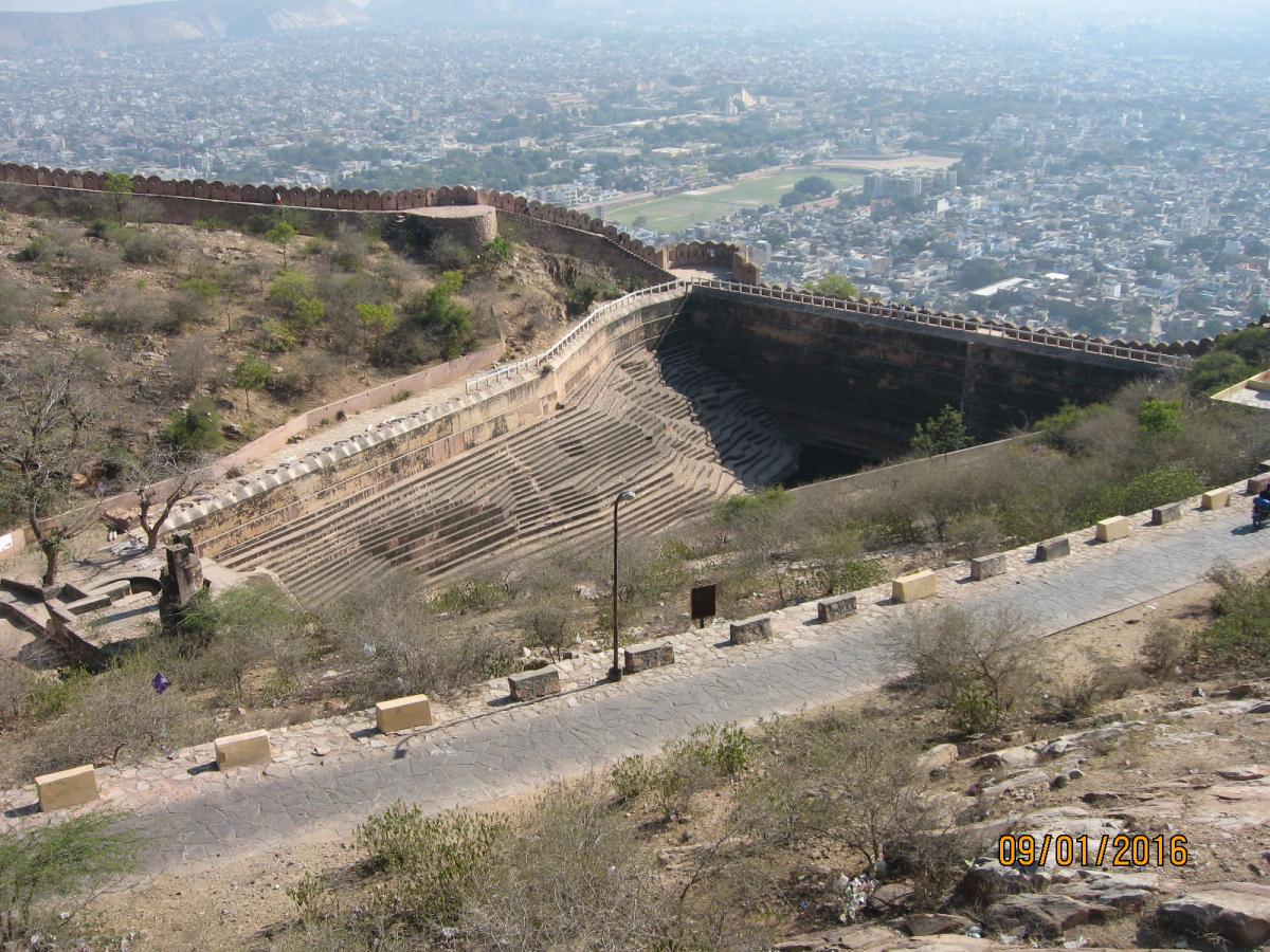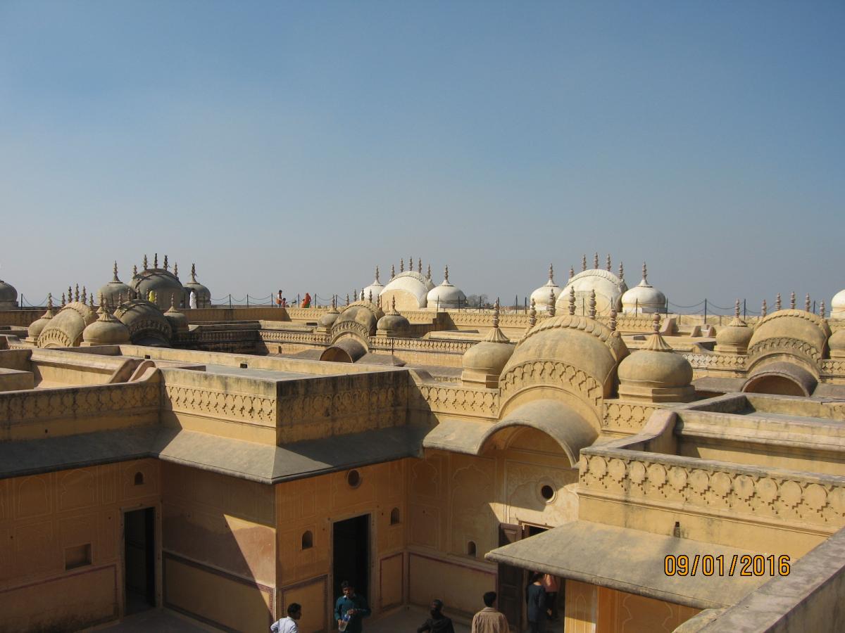 Форт возвышается прямо над городом и является исключительно военным объектом, по размерам (сохранившейся части) меньше предыдущего и центральным, так сказать экспонатом здесь является Летний дворец махараджи с крыши которого открывается очень красивый вид на город Джайпур.